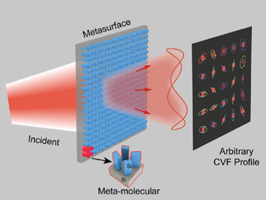 采用单层透射式全介质超表面,提出了一种新颖的自旋解耦干涉方式,在太赫兹波段实现了对两正交圆偏振出射波振幅和相位的四参量独立调控,获得了对透射太赫兹电场矢量的完全控制能力。该超表面的基本调控单元仅涉及两对具有半波片性质的矩形硅柱微结构,理论发现,当这两种微结构的整体传播相位相差π/2时,即可通过简单地控制它们的旋转角度实现圆偏振基下的全参量调控,且四个旋转角度和四个参量间的关系可通过解析式进行有效描述。借助于所提出调控单元的强大矢量场控制能力,设计了一种五通道成像超表面器件,可在不同的电磁波参量下呈现不同的像,具体为在强度(s0),相位(Ψ)和三个斯托克斯参数(s1, s2, s3)通道下,分别呈现出“Hi TJU”的散点图案,相应实验和仿真结果均展示出了良好的成像效果。为了进一步展示该调控方法的全参量调控能力并拓展其应用范围,又设计了一种基于电磁波全参量成像的光学信息加密超表面,将加密信息以二进制方式存储于s1, s2, s3通道下的散点图像内,将解加密的秘钥信息存储于s0和Ψ通道下的散点图像内,只有准确得知每一参量的含义,才能提取正确的加密信息,加大了被破译的难度。相关研究成果以“Spin-Decoupled Interference Metasurfaces for Complete Complex-Vectorial-Field Control and Five-Channel Imaging”为题发表在《Advanced Science》。